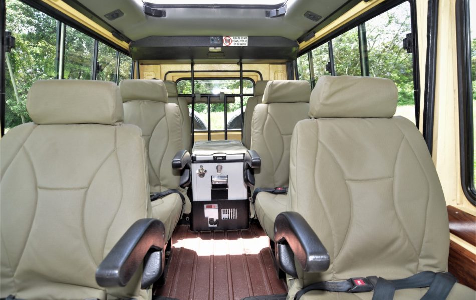As Ngenda Tours and Safari, we have our own safari jeeps: a 4×4 Toyota Land Cruiser. We have both 5-seater and 7-seater safari jeeps that prioritize safety and comfort, offering you a smooth and private safari experience. Every jeep is equipped with a pop-up roof and big extended windows (bigger than usual) for the best viewing experience. The comfortable seats have a headrest, armrest, and seatbelts and each seat is a window seat. In the vehicle, you have charging ports for your devices and a refrigerator to cool your drinks. There is also a good boot space at the back for your luggage.